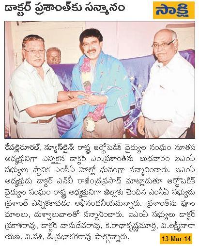 MCA member Dr M.Prashanth, elected as OSSAP president - Felicitations 12.03.2014