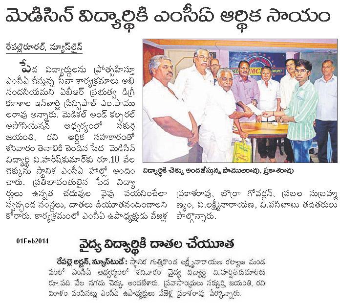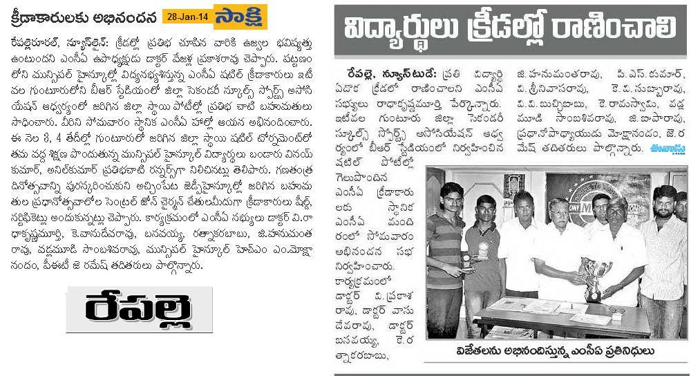 Felicitation for Repalle based girl gets NASA award 29.05.2014