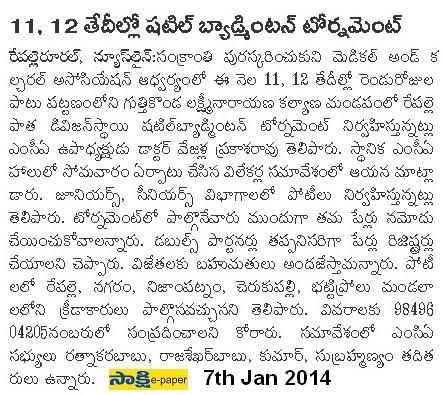 Shuttle badminton tournament 07.01.2014