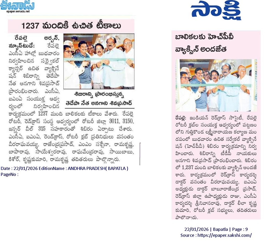 డాక్టర్స్డే వేడుకలు 01.07.2023 మెడికల్అండ్కల్చరల్అసోసియేషన్– ఇండియన్మెడికల్అసోసియేషన్(ఐఎంఏ) ఆధ్వర్యంలో డాక్టర్స్డే వేడుకలను ఘనంగా నిర్వహించారు. వేడుకల్లో ముఖ్యఅతిథులుగా కమిషనర్విజయసారధి, సీఐ నజీర్బేగ్లు పాల్గొన్నారు. డాక్టర్స్డే సందర్భంగా ప్రభుత్వ వైద్యశాల సూపరింటెండెంట్సురేంద్రనాథ్, ఏబీఆర్డిగ్రి కళాశాల ప్రిన్సిపాల్రవిచంద్రకుమార్, ఉల్లిపాలెం జడ్పీహైస్కూలు హెచ్ఎం నల్లూరి స్వర్ణలత, హింది ఉపాధ్యాయురాలు ఆకుల శివనాగజ్యోతిలకు సన్మానం నిర్వహించారు. అదేవిధంగా ఐఐఐటీ–జేఈఈలో జాతీయస్థాయిలో 28వ ర్యాంక్సాధించిన ఐనంపూడి హర్షితను సత్కరించారు. ముగ్గురు విద్యార్ధులకు సైకిళ్లను, ప్రభుత్వ పాఠశాలలో చదివి అత్యధిక మార్కులు సాధించిన 10వతరగతి, ఇంటర్మీడియట్, డిగ్రి విద్యార్ధులు పలువురికి దాతల సహకారంతో రూ.1.5లక్షల ఉపకారవేతనాలను అందజేశారు. కుట్టుశిక్షణలో ప్రతిభ కనపరిచిన ఏ.నాగలక్ష్మికి కుట్టుమిషన్ను ఉచితంగా అందజేశారు. కార్యక్రమంలో ఎంసీఏ అధ్యక్షుడు కోగంటి రత్నాకరబాబు, కార్యదర్శి పరుచూరి శ్రీనివాసరావు, ఐఎంఏ అధ్యక్షుడు ఎన్బీ రాజేంద్రప్రసాద్, కార్యదర్శి వసంతం వీరరాఘవయ్య, ఎంసీఏ సభ్యులు రామకృష్ణబాబు, హనుమంతరావు, డాక్టర్ఏవీ సుబ్బారావు, నల్లూరి సునీత, బాపారావు, రామకృష్ణబాబు, కారుమూరు హర్షిత, ఎన్.వెంకట రత్నం, ఎ.నాగలక్ష్మి, నంబూరు సత్యప్రసాద్తదితరులు పాల్గొన్నారు.